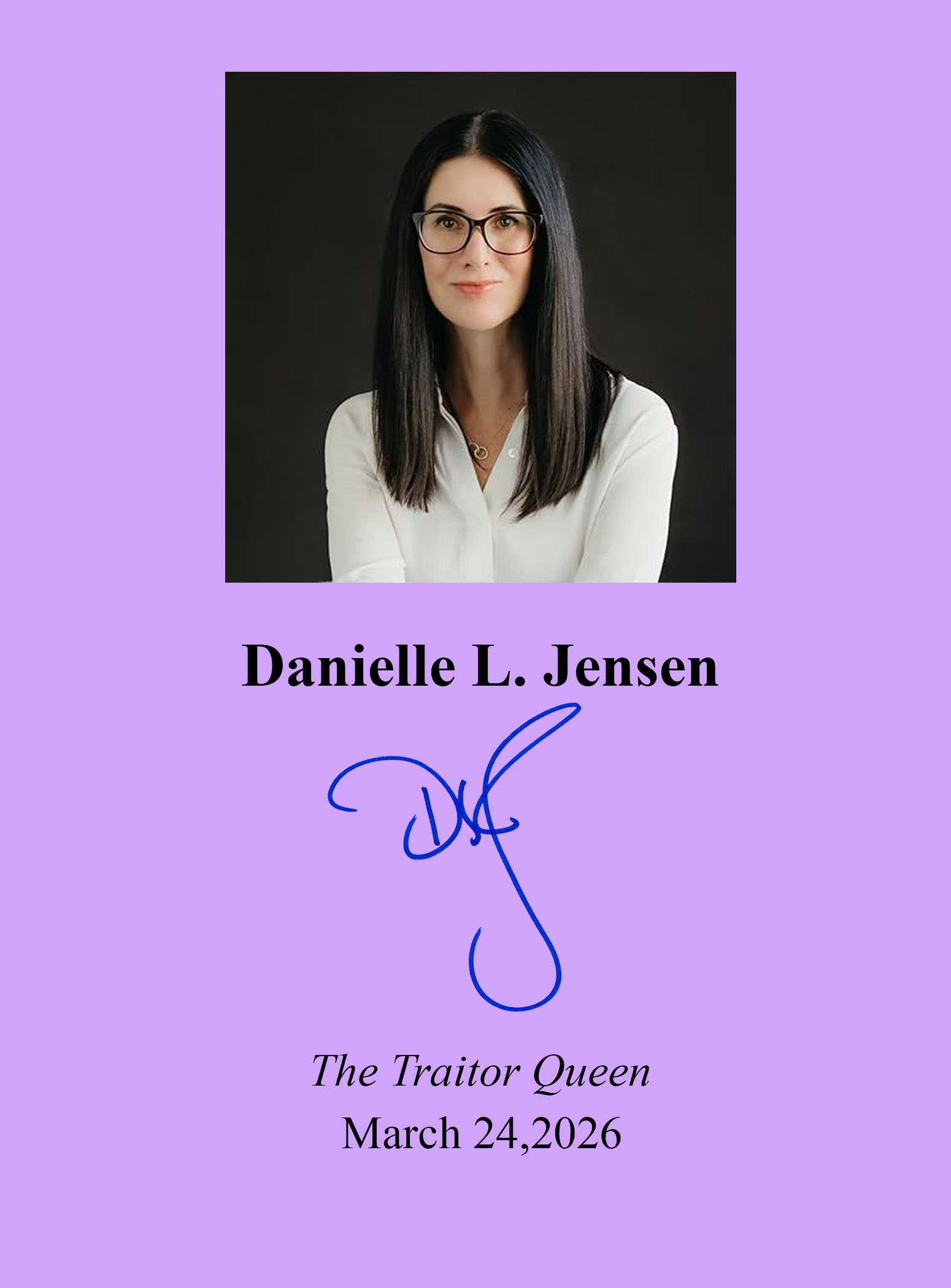 THIS COPY (shown below) was hand signed by Danielle Jensen on a page bound into the book. It is a new, unread, unopened first edition hardback and comes with a certificate authenticating the signature. Published in March, 2026 by Del Rey Books, an imprint of Penguin Random House.